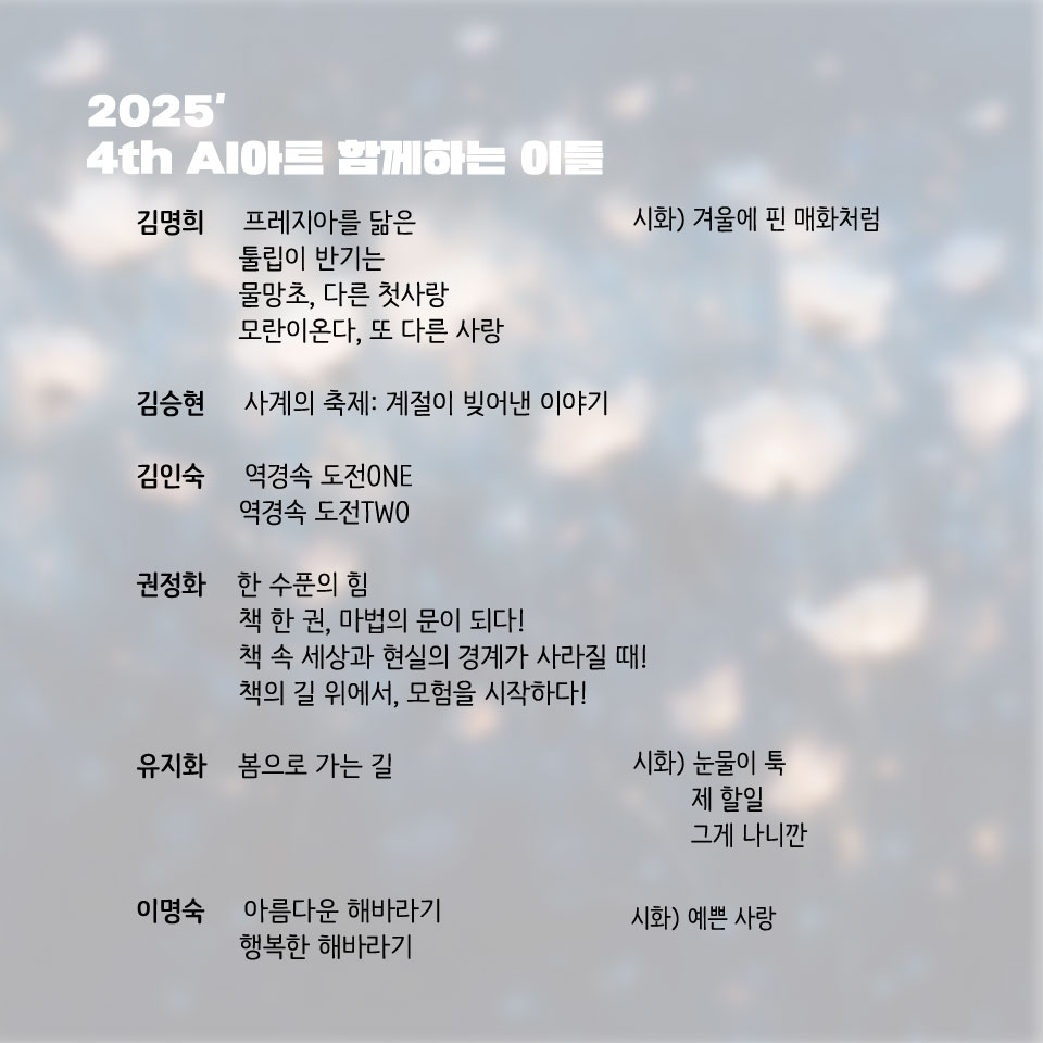 제가 처음으로 참여한 작품들이 “사계의 축제: 계절이 빚어낸 이야기”라는 주제로 인사드리게 되었네요.