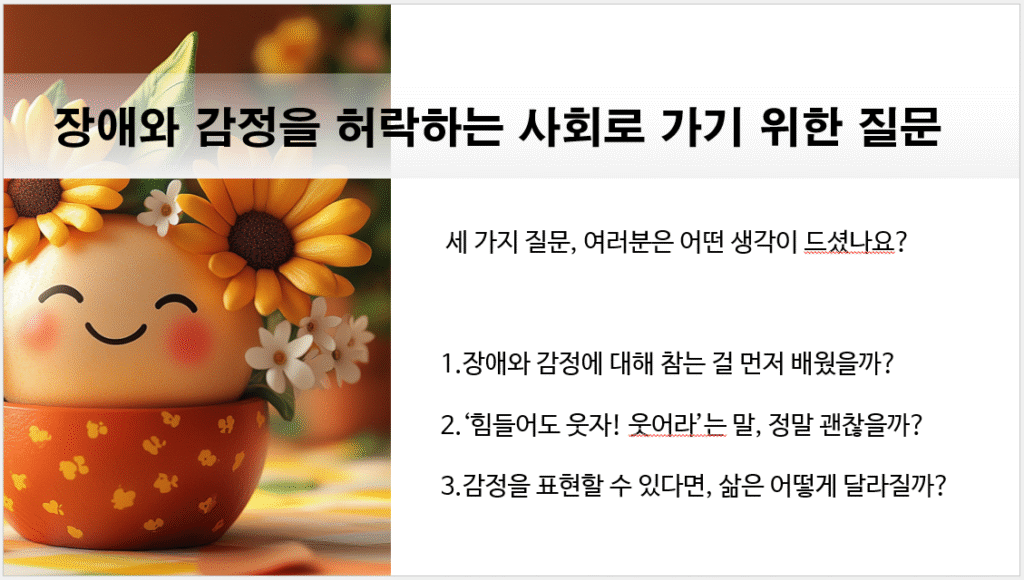 그날 <시니어라이프디자인 2025>강의에서 장애와 감정을 다루는 동안,